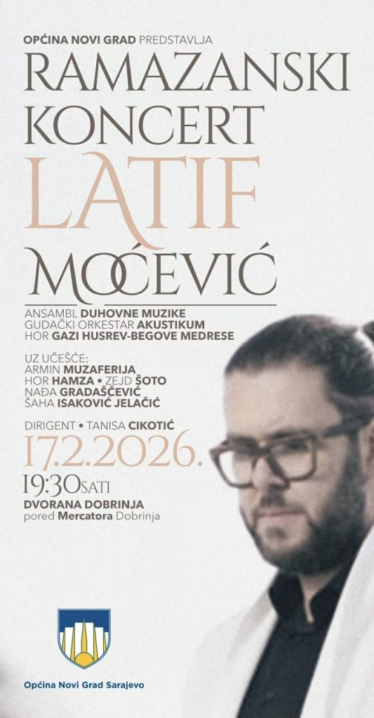 U susret mjesecu Ramazanu, Sarajevo će i ove godine biti domaćin posebnog muzičko-duhovnog događaja. Ramazanski koncert Latifa Moćevića bit će održan 17. februara 2026. godine u Dvorani Dobrinja (pored Mercatora), s početkom u 19:30 sati, a ulaz za sve posjetioce je slobodan.